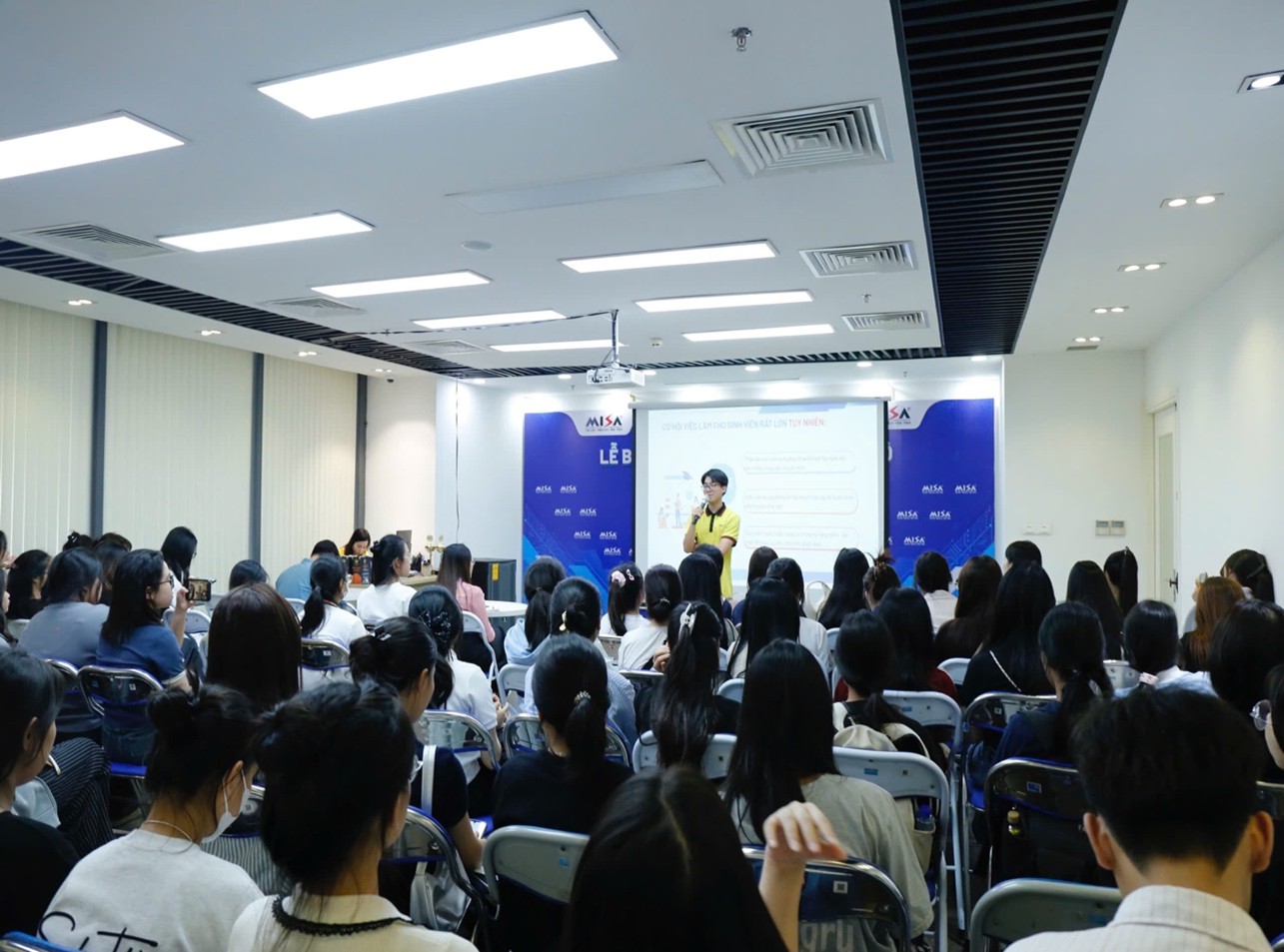 Buổi kiến tập diễn ra trong không khí sôi nổi, hào hứng với sự tham gia tích cực của đông đảo sinh viên. Tại đây, các em được tham quan môi trường làm việc chuyên nghiệp, tìm hiểu quy trình vận hành và phát triển phần mềm kế toán, đồng thời lắng nghe những chia sẻ sâu sắc từ các chuyên gia MISA. Thông qua buổi kiến tập, sinh viên có cơ hội tiếp cận kiến thức thực tiễn gắn liền với nội dung giảng dạy trên giảng đường. Những chia sẻ tâm huyết của đội ngũ chuyên gia giúp sinh viên nhận thức rõ tầm quan trọng của việc chủ động học tập, rèn luyện kỹ năng và nắm bắt xu hướng nghề nghiệp trong kỷ nguyên chuyển đổi số. Chương trình kiến tập không chỉ mang lại những giá trị học thuật và kinh nghiệm nghề nghiệp bổ ích, mà còn là nguồn cảm hứng mạnh mẽ, tiếp thêm động lực để sinh viên K70 Kế toán nỗ lực phấn đấu, học hỏi và trưởng thành hơn trên con đường trở thành những kế toán viên chuyên nghiệp của tương lai.